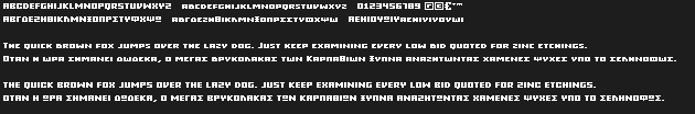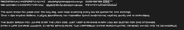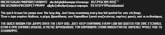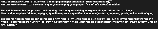 Grixel™ fonts are vector-based Greek pixel fonts that can be used at 8px size in Flash and Photoshop while retaining the text clean and crispy on the screen display.
