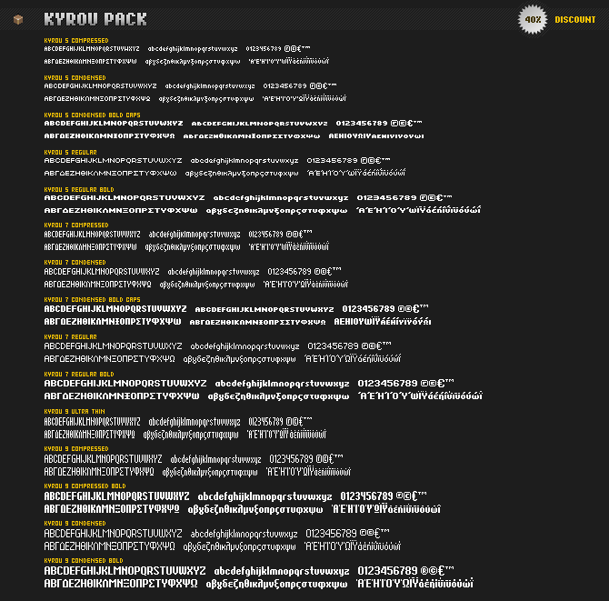 Here you can find free pixel fonts and use them in your personal and commercial projects. Moreover, you are urged to download them before making any purchases in order to check whether the language of your OS works with the languages that Grixel™ fonts support, so as to ensure that the fonts you are planning to purchase, will work as expected.